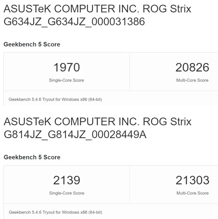 بر اساس نوشته‌ی ویدیوکاردز، لپ تاپی با نام ROG Strx G634JZ با نمایشگر ۱۶ اینچ در گیک‌بنچ رؤیت شده است که از پردازنده‌ی 13980HX استفاده می‌کند. لپ تاپی دیگر نیز با نام ROG Strix G814JZ دیده شده است. این لپ تاپ نمایشگر ۱۸ اینچ دارد.
