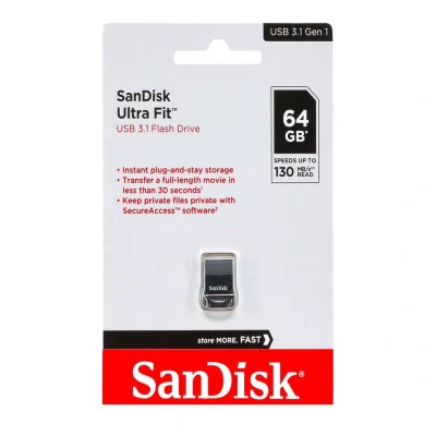 فلش سن دیسک مدل Ultra Fit USB 3.1 با ظرفیت 64 گیگابایت ، یکی از سریعترین فلش مموری های موجود در بازار می باشد.از ویژگی های این فلش مموری می توان به ابعاد کوچک آن اشاره کرد که برای جابجایی بسیار مناسب است.همچنین این محصول از رابط USB 3.1 بهره می برد.