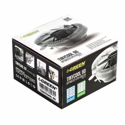 فن خنک‌کننده‌ی پردازنده «TinyCool-90» شرکت گرین (GREEN)، یک خنک‌کننده بادی است. از یک فن 90میلی‌متری با نهایت سرعت چرخش 2000 دور بر دقیقه، همراه با هیتسینک آلومینیومی و بیس هیتسینک آلومینیوی تشکیل شده است. همچنین طراحی خاص Base هیتسینک این فن به‌گونه‌ای است که تیغه‌های آلومینیومی این بخش با فشردگی بسیار زیاد مستقیماً با سطح IHS پردازنده تماس دارند. میزان نویز تولیدشده توسط این فن 22 دسی‌بل می باشد. فن‌ به‌کاررفته در این خنک‌کننده انرژی مورد نیاز خود را از سوکت 3 پین تأمین می‌شود. این خنک‌کننده  با انواع پردازنده‌های شرکت اینتل (Intel) و AMD سازگاری دارد.